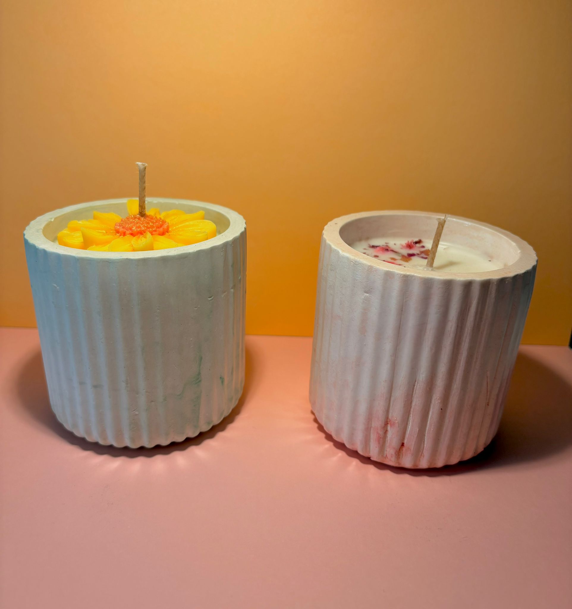 Nuestra vela de rayas está hecha con cera de soja 100% natural, cuidando tu espacio y el planeta.